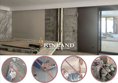 KINLAND® SMART WALL SOLUTION CAN ALSO REDUCE MATERIAL AND MANPOWER CONSUMPTIONS FOR SUBSTRATE, WHICH COLLECTIVELY SAVES SUBSTANTIAL TIME AND COSTS. IT IS OBVIOUS THAT KINLAND® SMART WALL SOLUTION IS NOT ONLY THE FORERUN TO BREAKTHROUGH AND IMPROVE THE TRADITIONAL INTERIOR CONSTRUCTION AND RENOVATION METHODS AND PROCESSES, BUT ALSO CONFERS SIGNIFICANT, MEANINGFUL, ENVIRONMENTAL, AND SOCIETAL BENEFITS TO DIFFERENT STAKEHOLDERS,